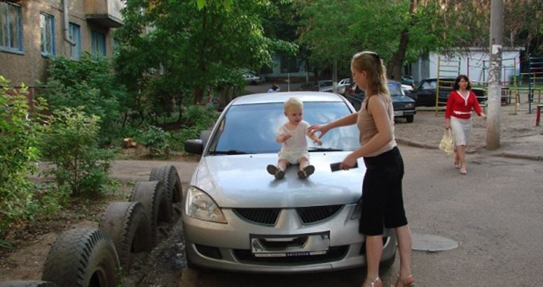 Сергій побачив, що поруч із його машиною стоїть його роз лучена сусідка із сином. Підійшовши ближче і побачивши напис, він не знав, що робити.